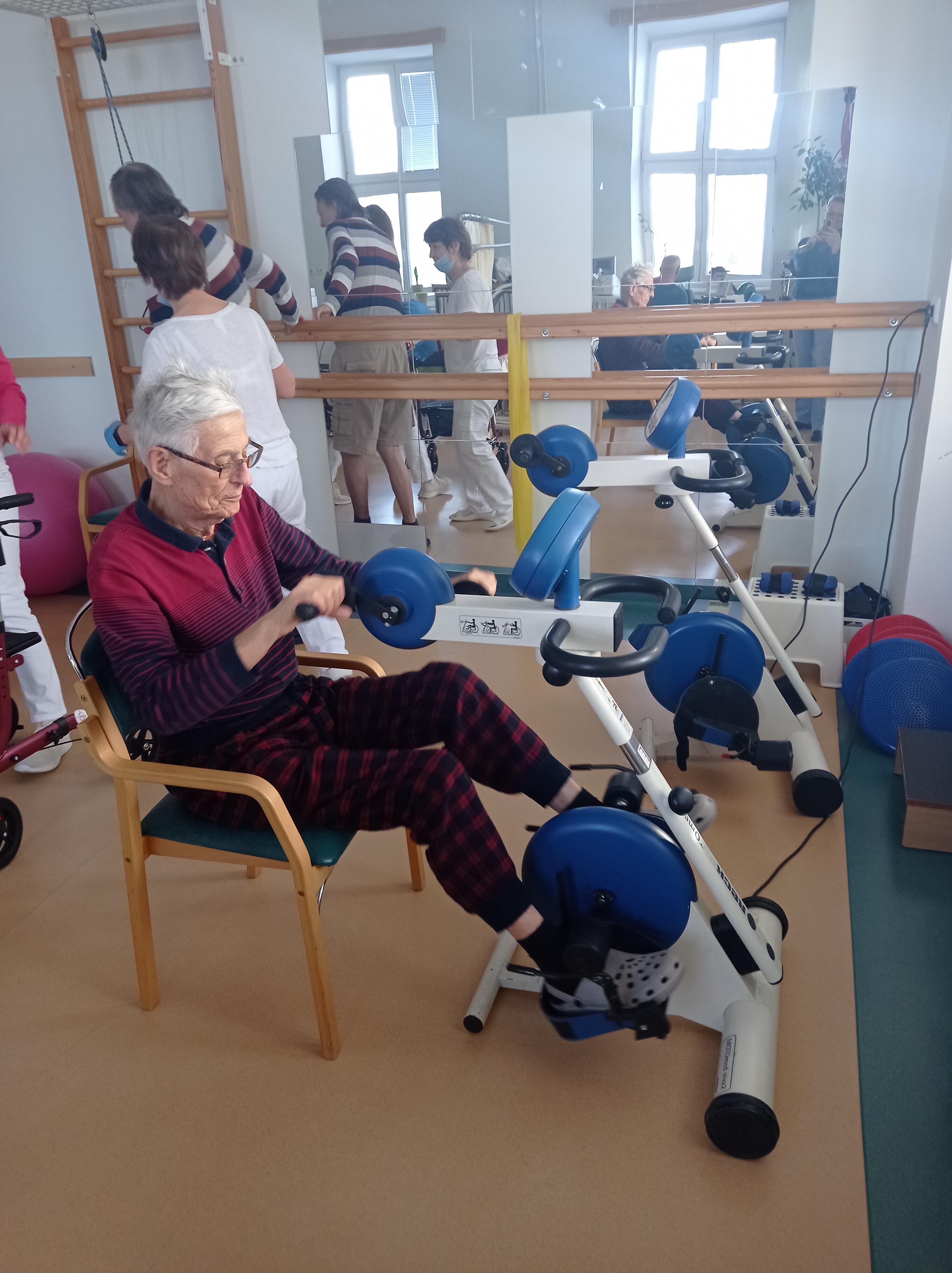 Letos se nám podařilo do rehabilitačního oddělení Domova pořídit nový Motomed, který nahradil již nevyhovující přístroj. Motomed je nepostradatelnou rehabilitační pomůckou, která pomáhá seniorům po úrazech či operacích znovu posilovat pohyblivost a vracet se k větší soběstačnosti.
