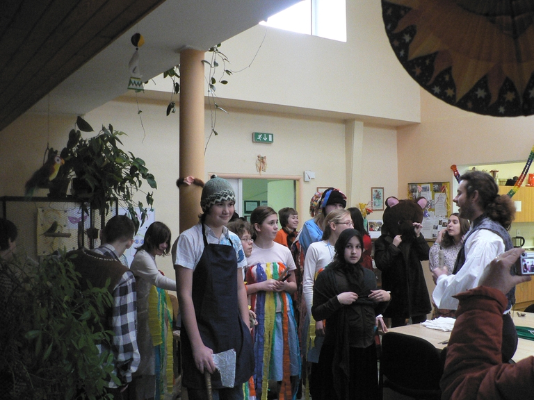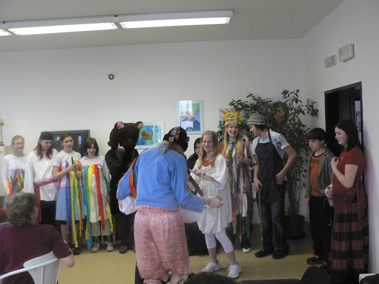 Pan učitel uděluje svým svěřencům poslední připomínky před vystoupením